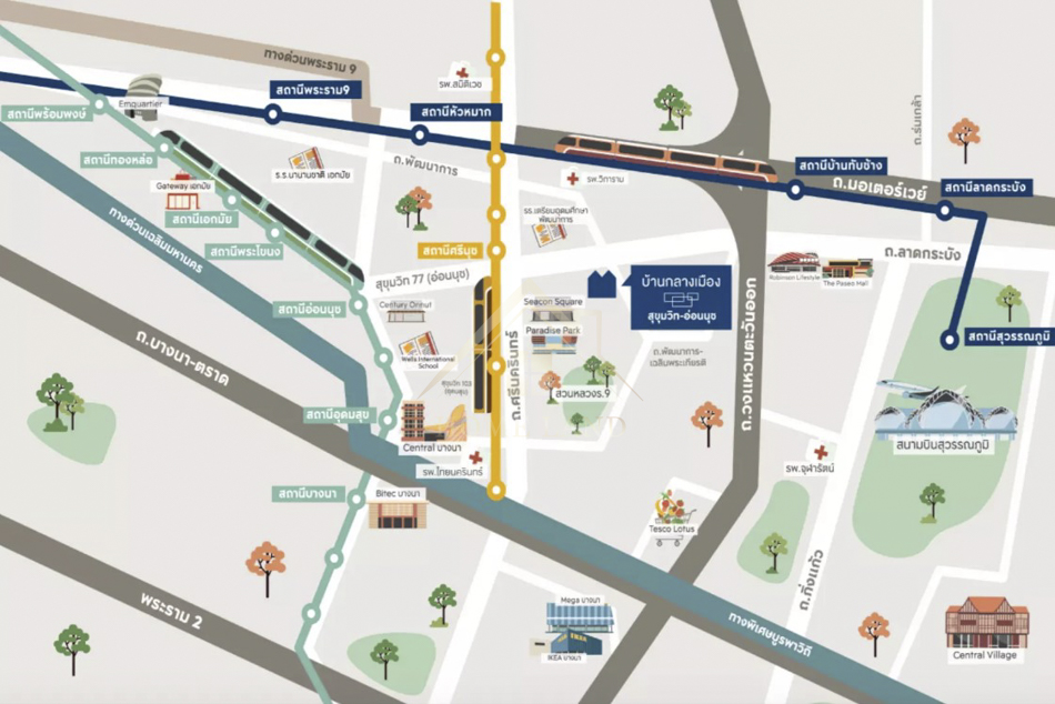 สถานที่ใกล้เคียง - ตลาดเอี่ยมสมบัติ ~ 1.9 km. - Seacon Square ~ 3.8 km. - รร.เตรียมอุดมพัฒนาการ ~ 3.9 km. - ตลาดรถไฟศรีนครินทร์ ~ 4.8 km. - Paradise Park ~ 5 km. - สวนหลวงร.9 ~ 5.5 km. - Tesco Lotus พัฒนาการ ~ 6.1 km. - Big C Extra อ่อนนุช ~ 6.6 km. - Tesco Lotus อ่อนนุช ~ 8.4 km. - Mega Bangna ~ 11.3 km.